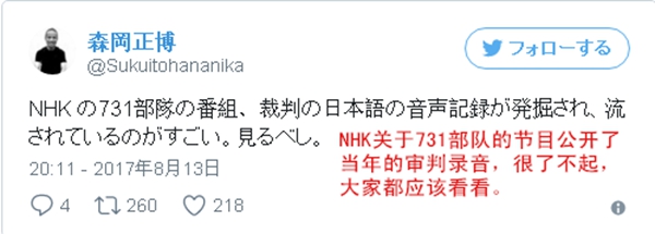 日本电视台自揭731部队罪行 网友:比妖魔还恐怖