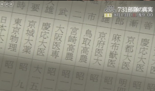 731部队(图片来源:NHK视频截图)
