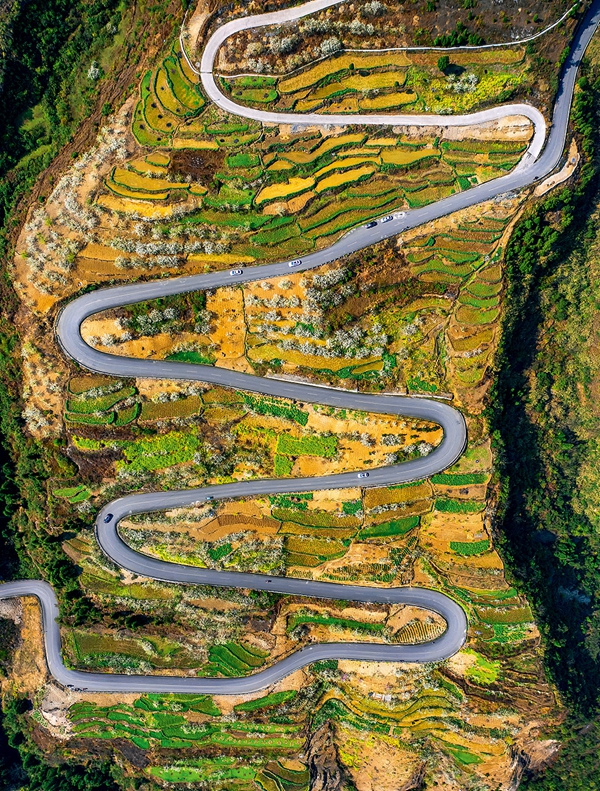 从空中俯瞰叙永县水潦乡至古蔺县太平镇农村扶贫公路十二道拐,就像为人体输送血液和养分的主动脉。这条特殊造型的扶贫公路,吸引了无数摄影爱好者,成为名副其实的网红路,也是带领沿线百姓过上好日子的致富路。