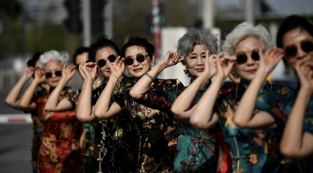 北京,“时尚奶奶”穿着旗袍参加电视节目彩排。六七十岁老人们组成的“时尚奶奶团”在网络上吸引了成千上万粉丝的关注