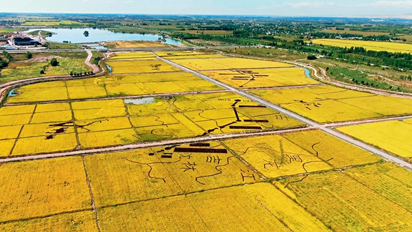 新疆伊犁悦然生态农业有限责任公司稻田蟹养殖基地的稻田画