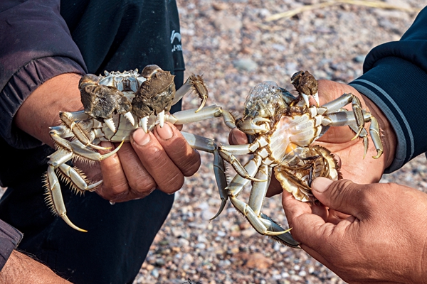 “2023年稻田养蟹1038亩,产量20多吨。”在伊犁哈萨克自治州察布查尔锡伯自治县,伊犁悦然生态农业有限公司总经理管小平指着一笼刚拉上来的螃蟹,乐呵呵地说,“优质河蟹每公斤可以卖到350元呢。”据了解,察布查尔县有得天独厚的气候和水质养殖条件,光热充足、水质清澈。在江苏盐城援疆工作组资金、种苗、技术等多方面支持下,管小平在盐碱戈壁地上兴建大规模的水产养殖项目,成为新疆第一个养螃蟹的人。