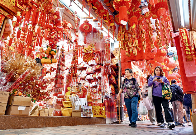 2024年1月18日,香港有市民到深水埗福荣街购买贺年装饰迎接新春,现场的商户摆满挥春等贺年装饰,气氛浓厚 图/ 中新社记者 李志华