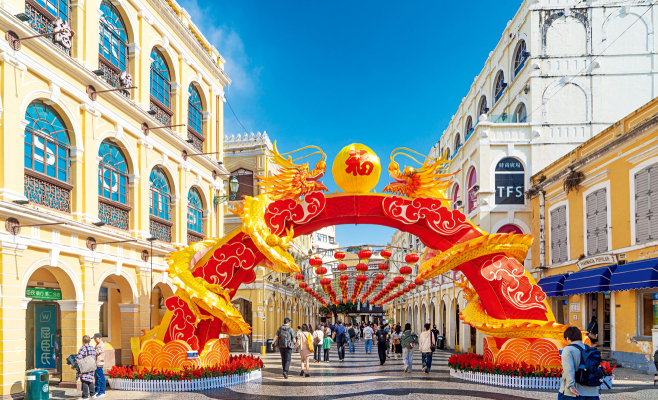 玉兔辞旧岁,金龙迎新年。为迎接农历甲辰龙年到来,香港和澳门纷纷推出贺岁活动,精致的灯饰开始点亮香港和澳门的大街小巷。在香港街头,不时可见一间间摆满了年花的店铺,花团锦簇,春意盎然。商超、景点、酒店等处排起长队。在澳门,迎新春装饰扮靓街头,大家忙着购买年货、添置新衣,大三巴商圈等地人潮如织。一系列精彩的贺岁活动,让市民和游客在新春佳节期间感受与众不同的港澳年味。