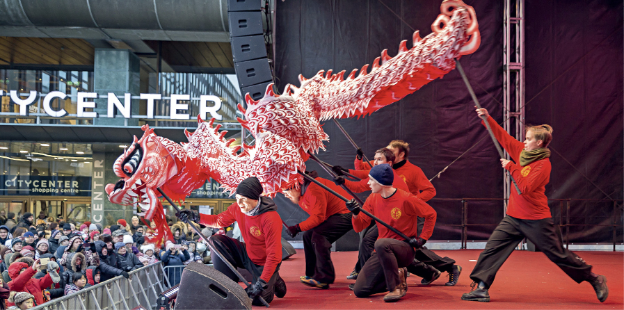 2007年,由北京市政府赠送的两条“中国龙”来到芬兰,拉开了首届芬兰“欢乐春节”文化庙会活动的序幕,也将北京与赫尔辛基两座城市紧密相连。“就在2019年,我们的舞龙舞狮队还曾前往赫尔辛基,为芬兰武术协会进行为期10天的舞龙舞狮教学。”本次“芬兰、爱沙尼亚欢乐春节”的项目组负责人说:“在赫尔辛基有一群钟爱中国文化,痴迷东方舞龙舞狮技艺的人们,他们听课非常认真,边听边模仿,手里还一直拿着小本子用画图的方式记录动作要领。”
