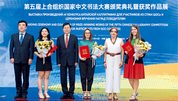 2022年7月14日,第五届“上合组织国家中文书法大赛”颁奖典礼暨获奖作品展在北京举行 图 /人民画报 段崴