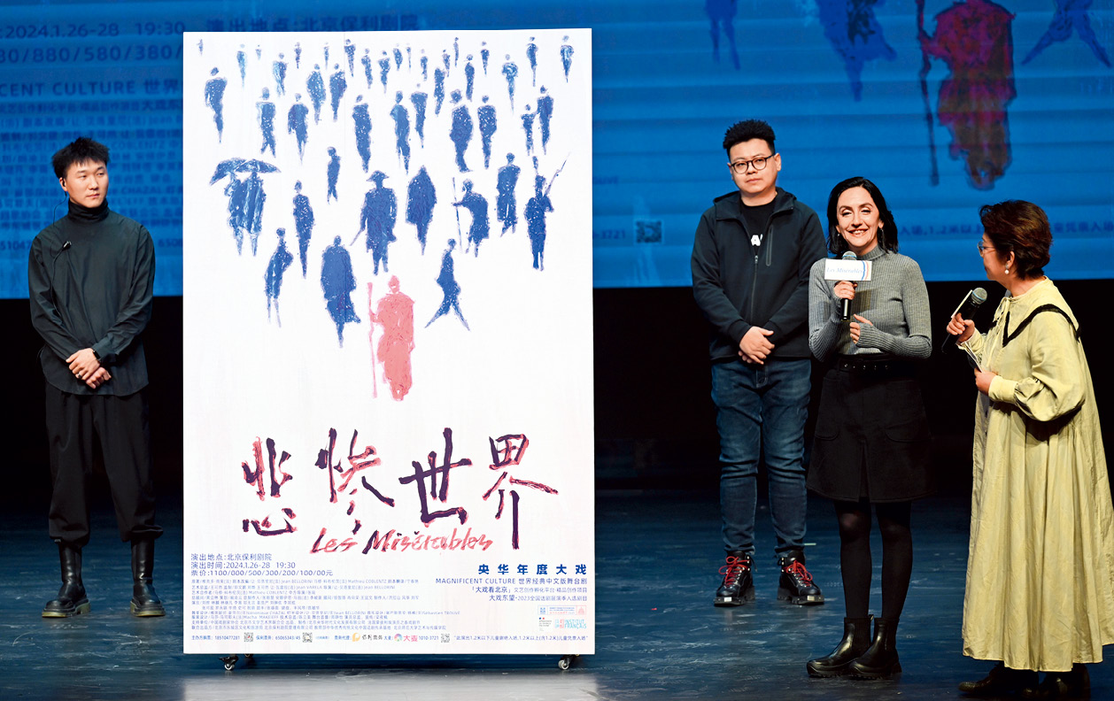 2023年12月15日,话剧《悲惨世界》2024年全国巡演启动仪式及重要活动发布在北京老舍剧场举行,总制作人安娜伊思·马田(右二)公布话剧《悲惨世界》的新海报