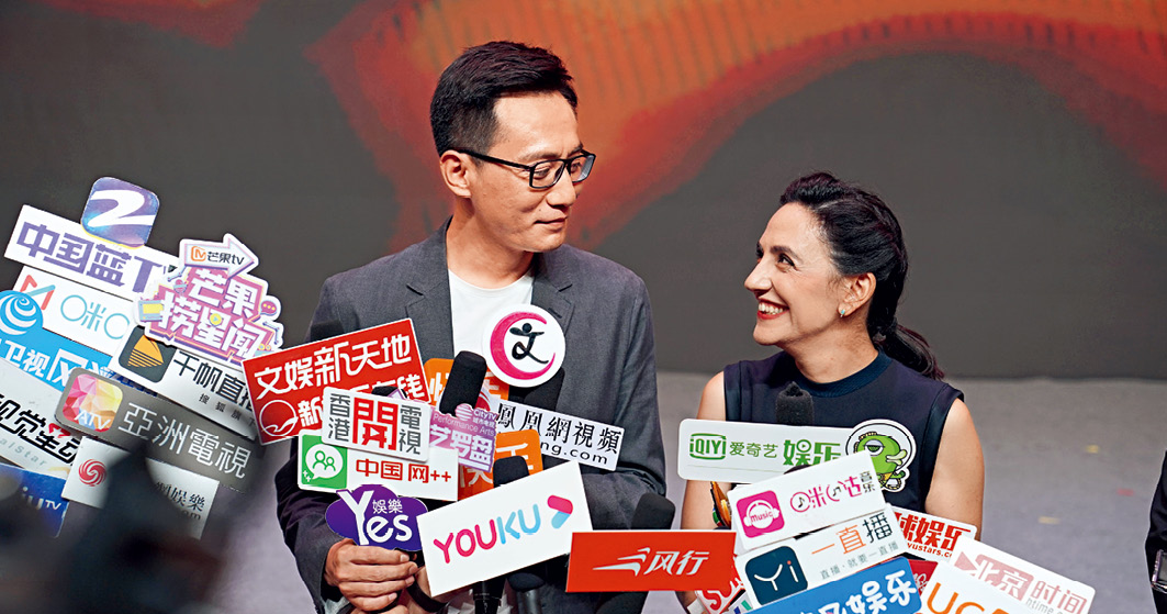 2019年10月10日,刘烨影像导演作品—舞台剧《犹太城》主题曲MV分享发布行动在北京举行。该MV由中国著名演员刘烨执导拍摄,他也是《犹太城》女主角、法国艺术家安娜伊思·马田的丈夫。图为刘烨、安娜夫妇接受采访