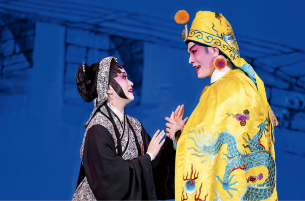在《白兔会》中,刘智远(蓝天佑饰)与李三娘(余仲欣饰)久别重逢,二人互诉离情,感人至深