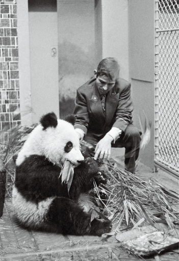 1973年12月12日,中国赠给法国的两只雄性大熊猫“燕燕”和“黎黎”在法国万塞讷动物园安家。图中是大熊猫“燕燕”