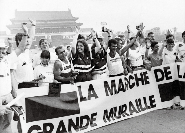 1987年6月22日,法国“沿万里长城步行团”在北京天安门广场举行出征仪式