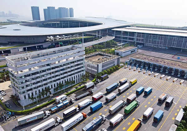 2023年6月11日,广东珠海,货车在港珠澳大桥珠海公路口岸候检
