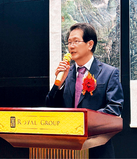 2023年9月23日,王鹤在《中西合璧书画名家精品展》开幕式上