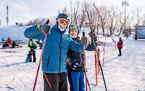 2024年1月5日,吉林,万科松花湖度假区滑雪场,国际友人来此体验滑雪带来的乐趣