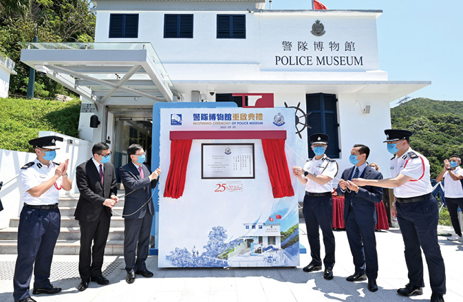 2022年9月9日,邓炳强(左二)参加香港警队博物馆重启典礼