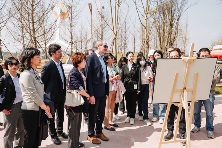 国际园艺生产者协会秘书长提姆•布莱尔克里夫考察成都世园会主会场的筹备进展情况