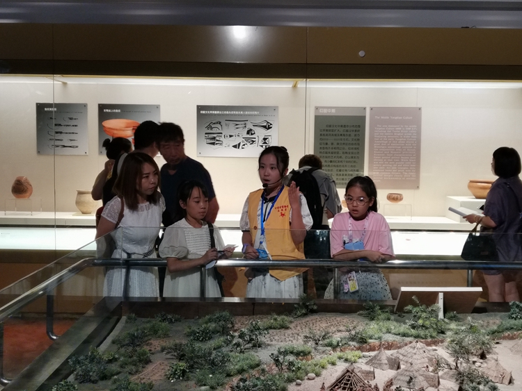 甘肃省博物馆小志愿者刘晨瑞在彩陶馆内为观众做义务讲解