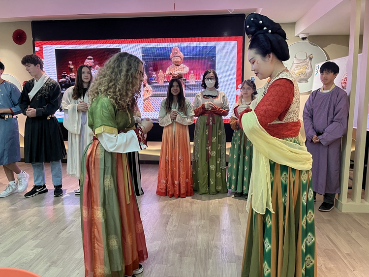 美国旧金山法美国际中学高中团师生在陕历博参加“唐韵悠悠 华夏霓裳”主题研学活动