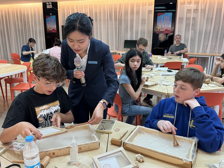 美国旧金山法美国际中学初中团师生在陕历博参加“古法造纸 独具‘浆’心”主题教育活动