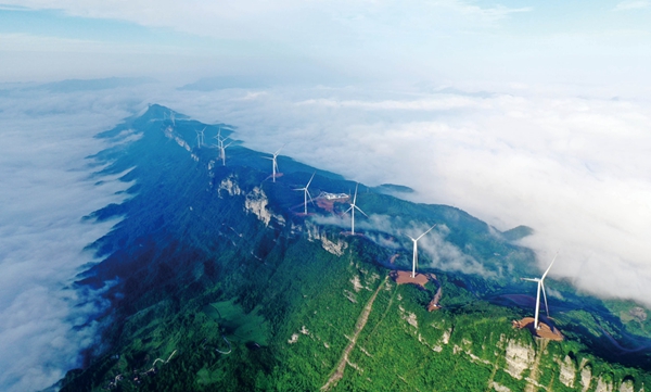 重庆,雨后云海环绕黔江区五福岭风电场,美如画卷