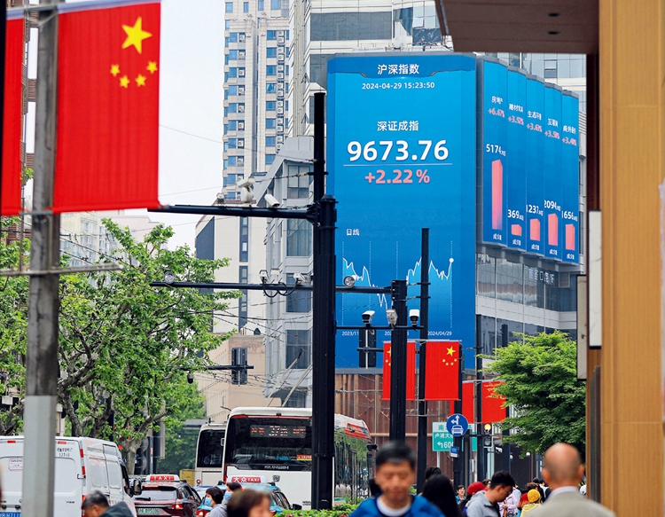 2024年4月29日,上海,大屏幕显示当日的股市情况