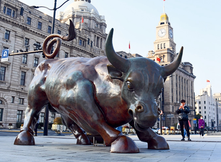 上海外滩象征股市牛市、金融牛市的金融牛雕塑