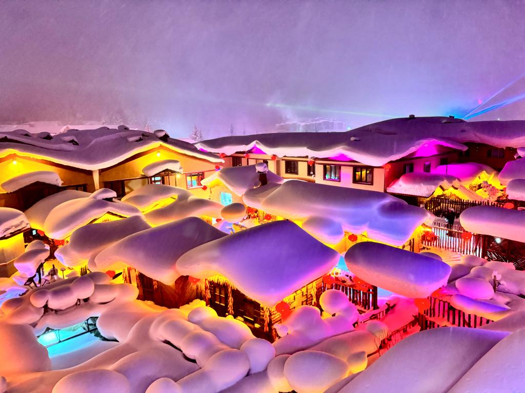 黑龙江省“中国雪乡”景区夜景(1月12日摄)。新华社记者 刘赫垚 摄