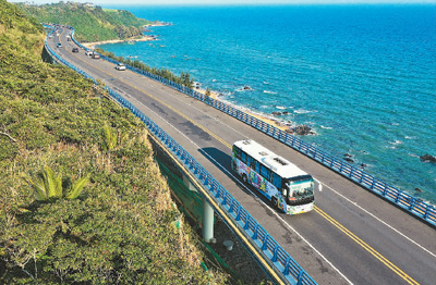 海南环岛旅游公路万宁正门岭大桥路段风光。