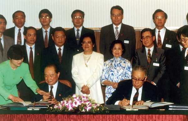 1993年4月27日,海峡两岸关系协会会长汪道涵先生和台湾海峡交流基金会董事长辜振甫先生在新加坡举行海内外备加关注的“汪辜会谈”后,汪道涵与辜振甫在四项协议上签字