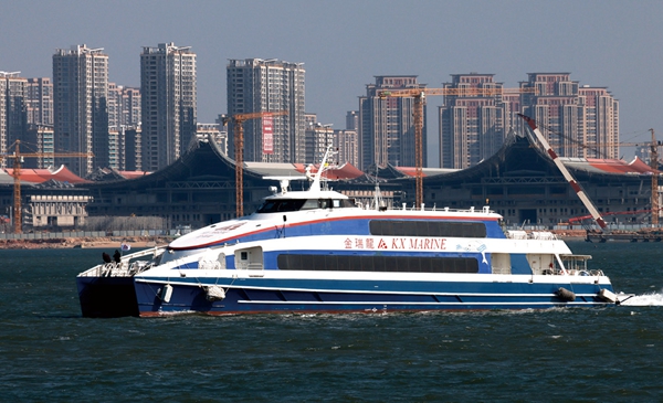 厦金客运航线2023年1月恢复通航的首航航班从厦门五通客运码头驶向金门