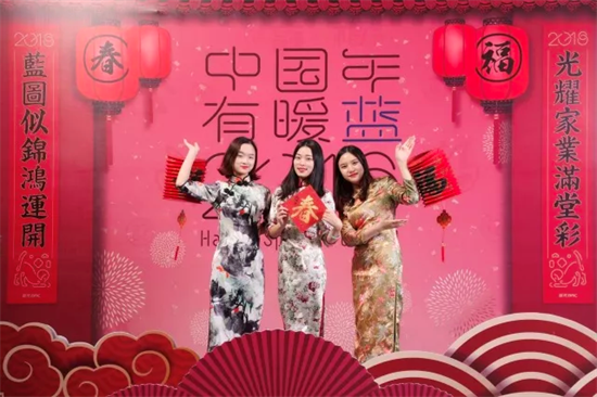 2月12日,蓝光集团的大厅中,也搭建起了红火喜气的场景,蓝光人纷纷来此,和亲如家人的同事合影留念——他们记录下了一年来的奋进与荣耀,也送出了自己最真挚的新年祝福。