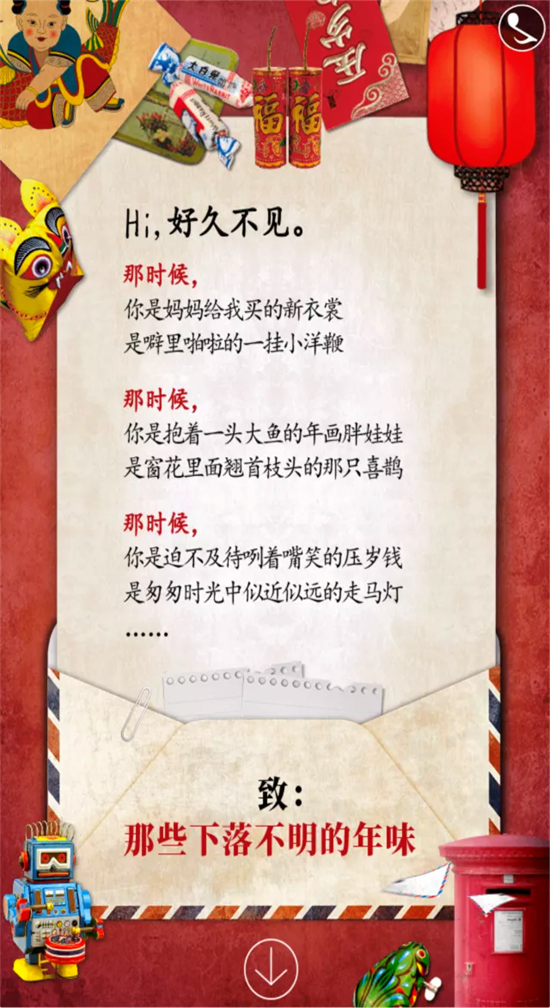 或许我们颇有感触,但却始终未能明白,年味儿究竟去哪儿了。庆幸的是,我们找出了年味褪去的原因,并用这款H5帮大伙儿寻回年味。