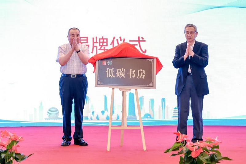 本次论坛由杭州国际城市学研究中心党组书记、主任江山舞主持。主旨报告前,原中共浙江省委常委、杭州市委书记、全国影响力建设智库浙江省城市治理研究中心主任、首席专家、浙江省大运河文化保护传承利用暨国家文化公园建设工作专家咨询委员会主任王国平与第十一、十二届全国政协委员、政协经济委员会委员,中国财政科学研究院研究员,华夏新供给经济学研究院创始院长,中国碳中和五十人论坛联席主席贾康共同为“低碳书房”揭牌。