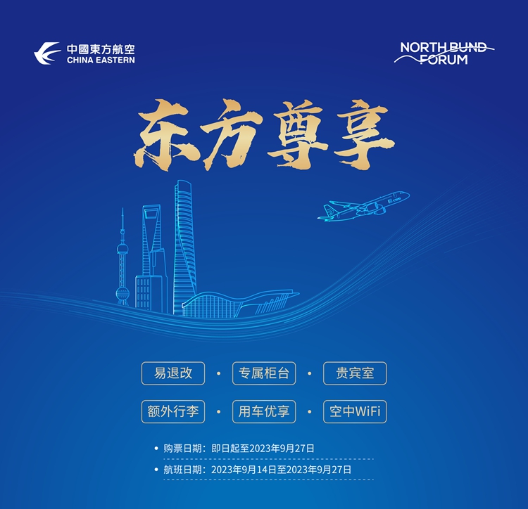 作为北外滩国际航空论坛的承办方之一,也是上海最大的主基地航空公司,中国东航今年继续以“四精”服务助力论坛成功举办。东航发挥自身特点,为来沪参会嘉宾打造了“东方尊享”产品,涵盖了航空出行全流程,包括“易退改”便捷线上服务、优先值机柜台服务、贵宾室服务、优先行李服务、机上Wi-Fi体验、“用车优享”、“畅行专享”等特色服务。