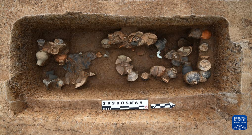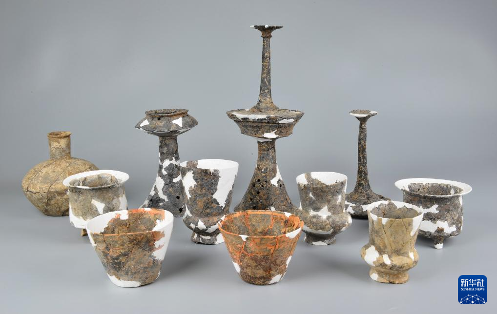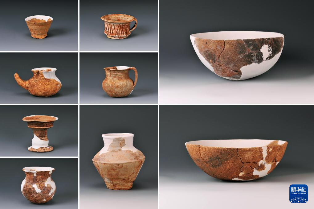 湖北沙洋城河遗址出土的部分陶器组合。新华社发(国家文物局供图)