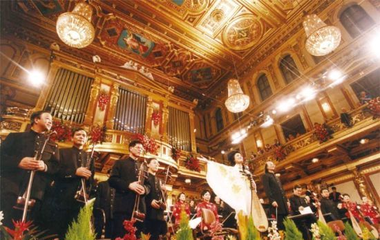 维也纳的冬天寒冷而多雪,但每年元旦在维也纳市中心金色大厅举办的新年音乐会都给这座美丽的城市增添了融融暖意。始于1941年的维也纳新年音乐会,经过半个多世纪的提炼和升华,已成为世界文化生活的一个重要组成部分。人们在欣赏约翰·施特劳斯家族优雅圆舞曲的同时,认识了音乐之国奥地利、认识了维也纳爱乐乐团、认识了执棒音乐会的音乐大师卡拉扬、克莱伯尔、阿巴多、祖宾·梅塔、洛林·马泽尔、穆提、小泽征尔等。然而时至1996年,尚没有一支中国乐团涉足这座音乐圣殿。