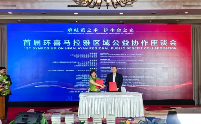 为庆祝中尼建交70周年,落实《中华人民共和国国家中医药管理局和尼泊尔卫生与人口部关于传统医学合作的谅解备忘录》精神,加德满都当地时间6月24日,由中华人民共和国驻尼泊尔大使馆、中国外文出版发行事业局指导,中国外文局西欧与非洲传播中心(今日中国杂志社)、北京伍连德公益基金会、云南国际经贸文化合作中心共同主办,《布达拉》综合传播平台、南亚网视、尼泊尔阿尼哥协会承办的首届环喜马拉雅区域公益协作座谈会在尼泊尔首都加德满都举办。中国驻尼泊尔大使馆代表、来自环喜马拉雅区域相关国家卫生部门代表、传统医药机构负责人、医疗机构从业者,中尼等国家传统医药领域的专家学者、科研人员等近200人参加了此次活动。