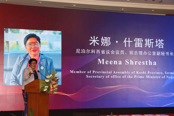 中国驻尼泊尔大使馆参赞王欣,尼泊尔众议院议员、尼泊尔政府前财政部长贾纳丹·夏尔马,尼泊尔科西省议会议员、前总理办公室副秘书长米娜·什雷斯塔出席活动并作开幕致辞,中国外文局副局长于运全发表视频致辞。会议同时在北京、云南昆明两地设置了远程分会场。