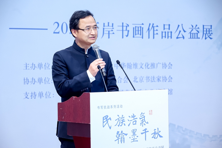 张吉明在致辞中表示,抗战胜利、台湾光复是包括台湾同胞在内的全体中国人民前赴后继、浴血奋战铸就的伟大胜利,是以爱国主义为核心的民族精神的伟大胜利,是全民族的伟大荣耀。两岸同胞同属中华民族,有共同的历史记忆、文化传统和精神家园。中国书法与绘画是中华文化的重要组成部分,笔墨写意载道,体现的是民族精神。“民族浩气 翰墨千秋——2025两岸书画作品公益展”今年先后在台湾、大陆举办。希望通过展览,激励两岸同胞同忆历史、捍卫成果、守护家园、共创未来。中国宋庆龄基金会愿与两岸有关机构和各界人士一道,持续深化拓展交流合作,共同传承弘扬中华文化,共同传承弘扬伟大民族精神、伟大抗战精神,为实现中华民族伟大复兴贡献力量。