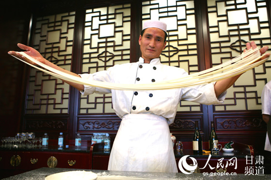 兰州牛肉面做工展示。(牟健 摄)