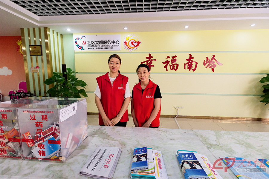 南岭村社区构建“党员+社工+义工”服务机制。社区现有注册及备案社团组织34个,义工服务队20支,其中党员志愿者230多人,志愿服务做到常态化。 摄影 王蕾/人民画报