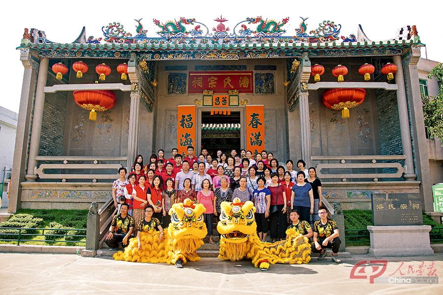 怀德社区部分居民在祠堂前合影。 摄影 王蕾/人民画报