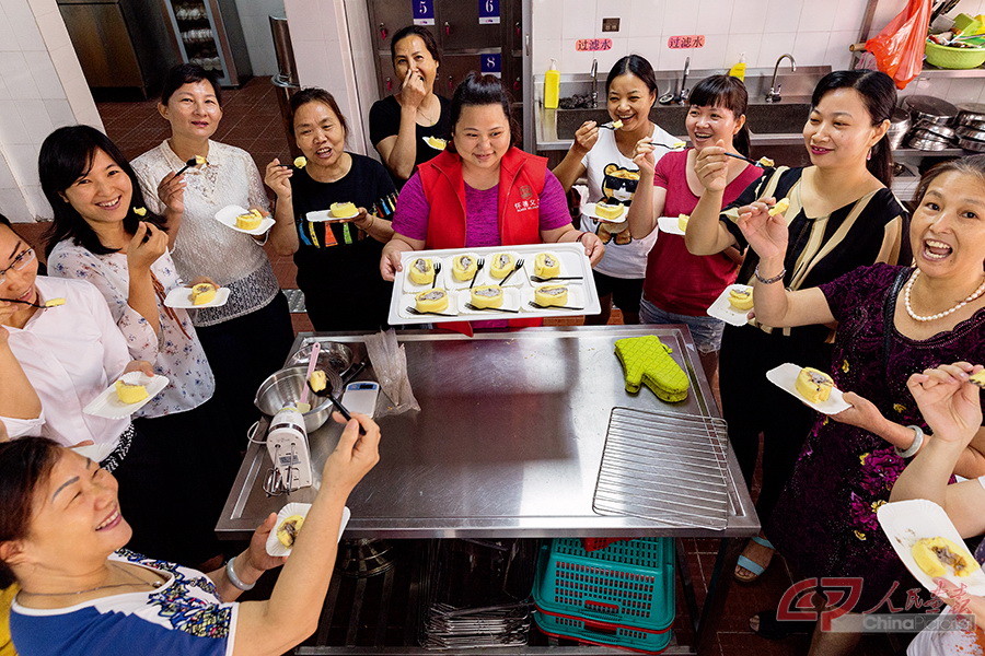 在采访中,我们正赶上怀德社区的妈妈厨房进行烘焙活动。十几位居民在老师的带领下,学习西式面点的烘焙技巧。怀德社区妇联主席潘肖焕介绍说:“妈妈厨房从老师到学生,都是怀德辖区的居民。不仅是本村原居民,只要居住在这里,有兴趣的话都可以参加活动。社区里的长者可以教大家做地道的传统美食,而来自五湖四海的租客们也可以带来家乡美味的烹饪技巧。”
