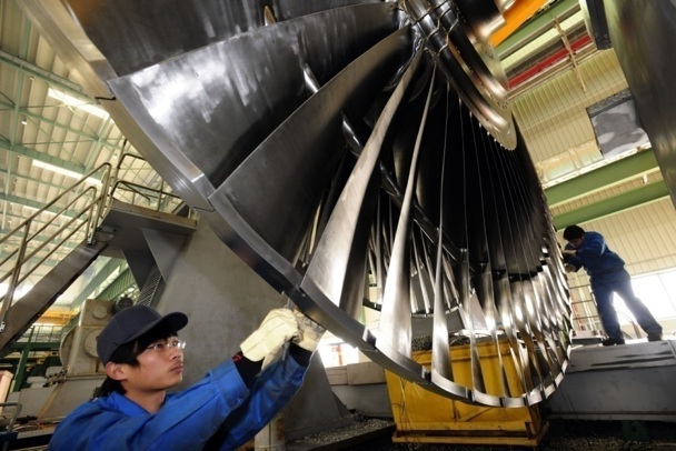 核电汽轮机1.9米长叶片正在装配(上海电气提供)