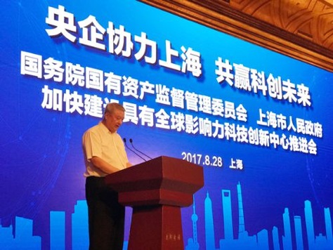 2017年8月,中核集团牵手上海市,合建先进核能技术科研创新中心,中核集团董事长王寿君作为央企代表进行发言(中核浦原提供)