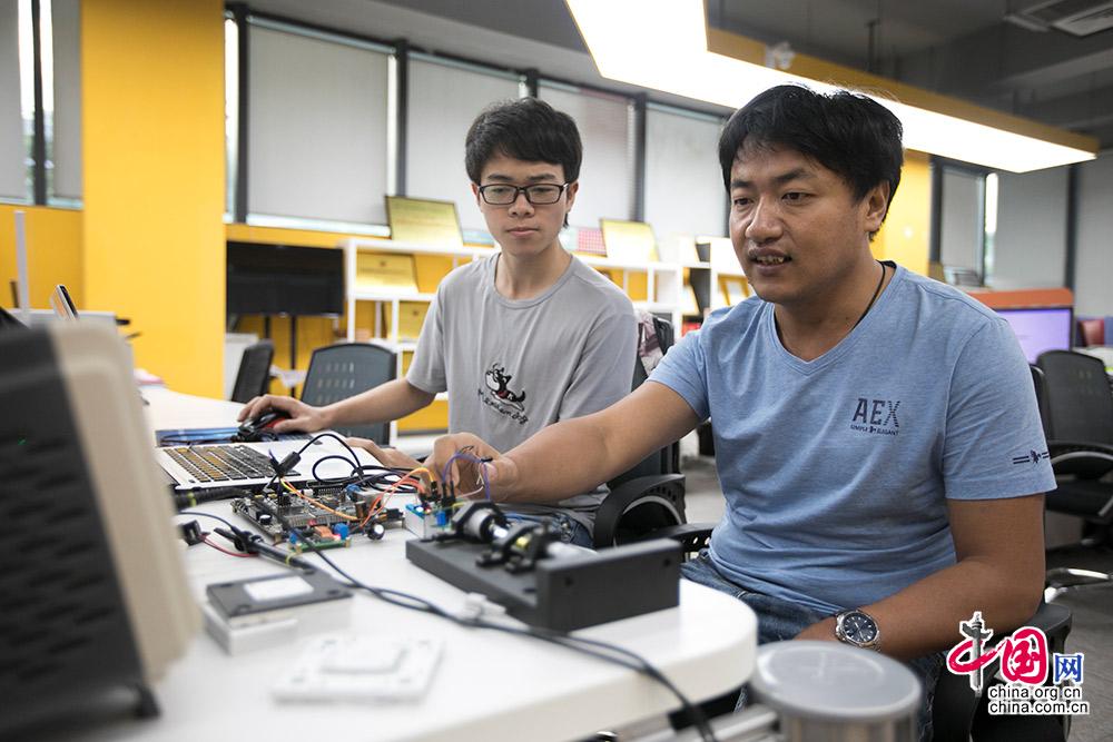 在创客大街的众创空间,华侨大学机电及自动化学院教师范伟博士带领学生成立了泉州恒度微纳科技有限公司,他们是晋江“海峡计划”的受益者,在这里,他们不但可以享受到免费办公空间,还会得到晋江市政府100万的扶持基金。‘海峡计划’是晋江针对高层次人才引进启动的人才计划,由市财政投入3亿元人民币的资金,计划4年内在传统产业、新兴产业等领域,对接、引进100名带技术、带项目、带团队的科技领军型创新创业人才。中国网记者 董宁摄影
