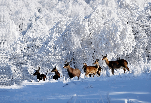 2018年1月29日,华南梅花鹿在清凉峰保护区千顷塘越冬 图/章叔岩