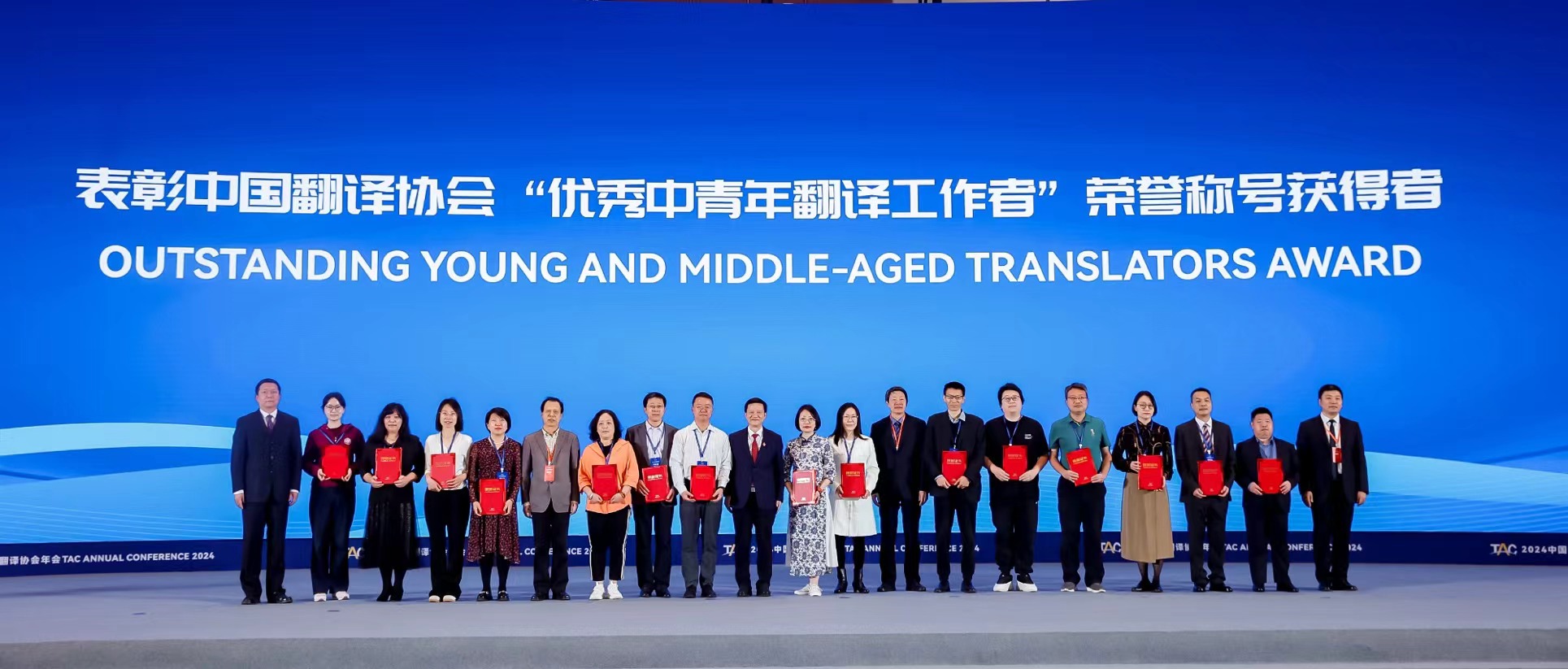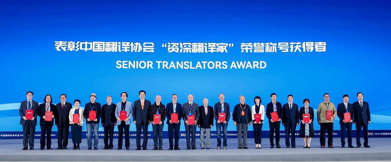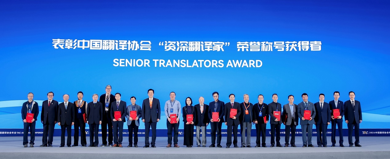 3月30日,由中国外文局、中共湖南省委宣传部、中共湖南省委外事工作委员会办公室、湖南省教育厅指导,中国翻译协会、中国外文局翻译院、湖南师范大学主办的2024中国翻译协会年会在湖南长沙召开。开幕式上举行了“翻译文化终身成就奖”“资深翻译家”“优秀中青年翻译工作者”“翻译中国外籍翻译家”表彰仪式,13位翻译家荣获“翻译文化终身成就奖”,73位翻译家被授予“资深翻译家”荣誉称号,125位翻译工作者被授予“优秀中青年翻译工作者”荣誉称号,8位外国专家被授予“翻译中国外籍翻译家”荣誉称号。