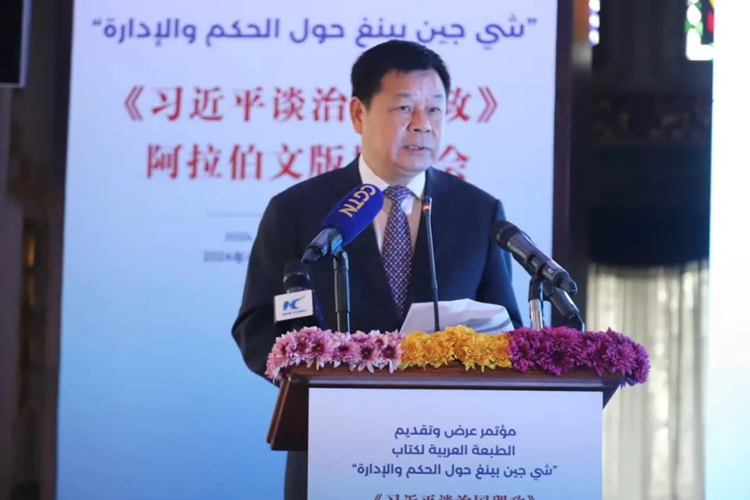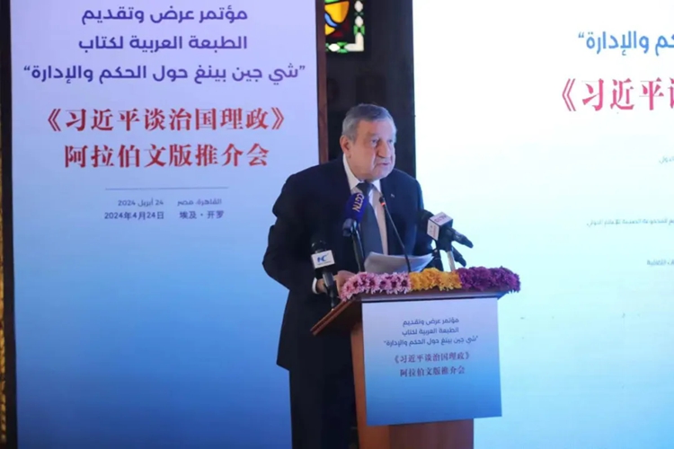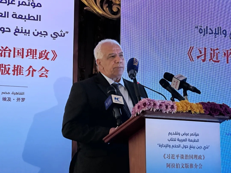 杜占元指出,《习近平谈治国理政》是中国国家主席习近平的重要著作,一直被视为世界读懂中国的“思想之窗”,不仅是新时代最具影响力的领导人著作之一,也是各国读者了解新时代中国治国理政方略、中华民族现代文明的权威读本,受到包括埃及在内的各国政要、专家学者、广大民众的广泛关注和普遍欢迎。他认为,这部著作蕴含了人民至上的价值取向,体现了国家治理中以人民为中心的发展思想;揭示了中国式现代化的内在逻辑,为发展中国家探索现代化道路提供了借鉴启示;阐明了中国的国际秩序观和全球治理观,高度关注和深入思考人类前途命运。他表示,中国外文局愿同包括埃及在内的阿拉伯国家媒体、出版、智库等各界持续增进交往合作,加强互学互鉴,搭建文化交流平台,进一步助力中埃、中阿民心相通。