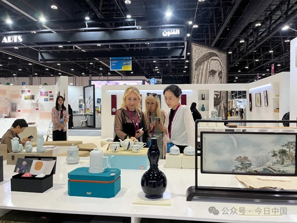 作为阿联酋阿布扎比语言中心、阿布扎比国际书展组委会的合作伙伴,中国外文局欧非传播中心(今日中国杂志社)应阿布扎比国际书展组委会特邀参展。“今日中国非遗馆”占地144平方米,聚焦珠算、陶瓷、竹刻等中国非遗作品及多种文创产品,神墨国际教育集团、山东银凤陶瓷集团以及景德镇粉彩陶瓷传承人傅长敏、陈罄等单位和艺术家携上百件非遗作品参加了此次非遗馆展示活动,成为阿布扎比书展上一道亮丽的风景线。